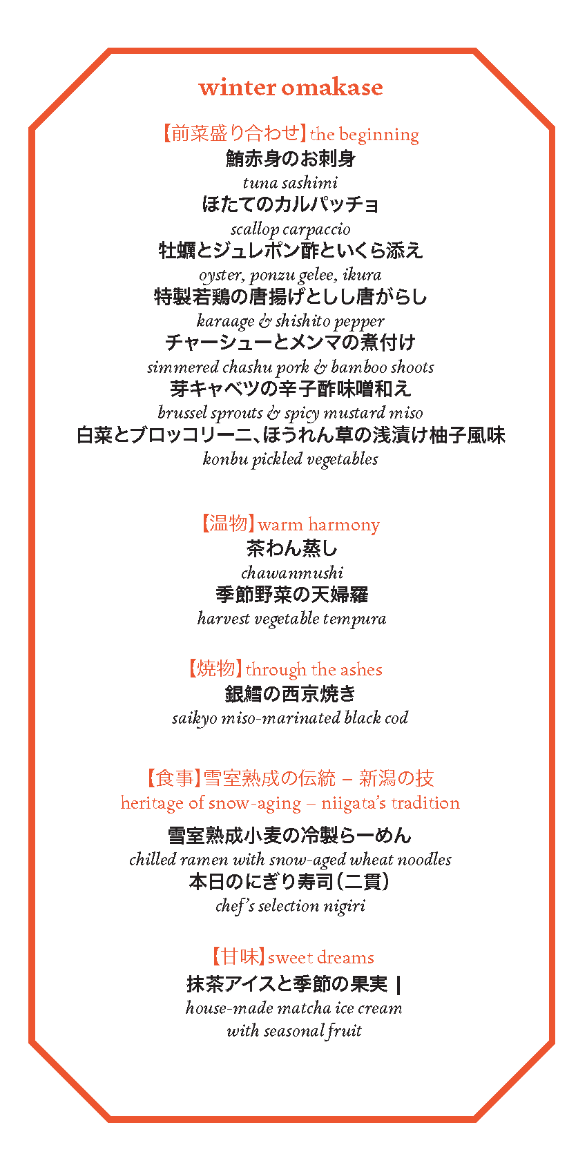 Served alongside mixed drinks, sake, an extensive wine list, beer and more. See the beverage menu here.